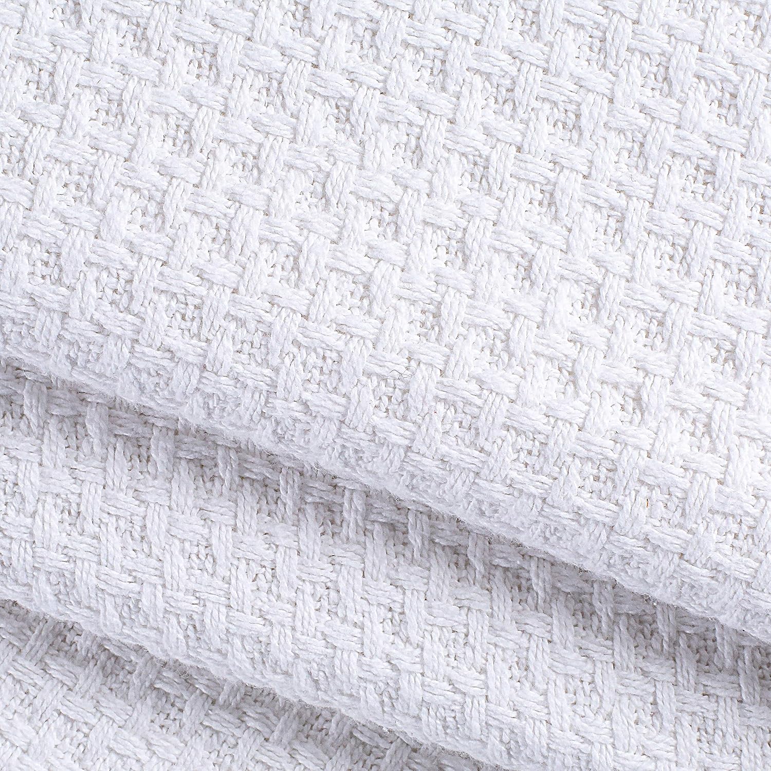 Elvana Home 100% Cotton Bed Blanket, Breathable Bed Blanket Full - Queen Size, Cotton Thermal Blankets Full - Queen, Perfect for Layering Any Bed for All Season, White
