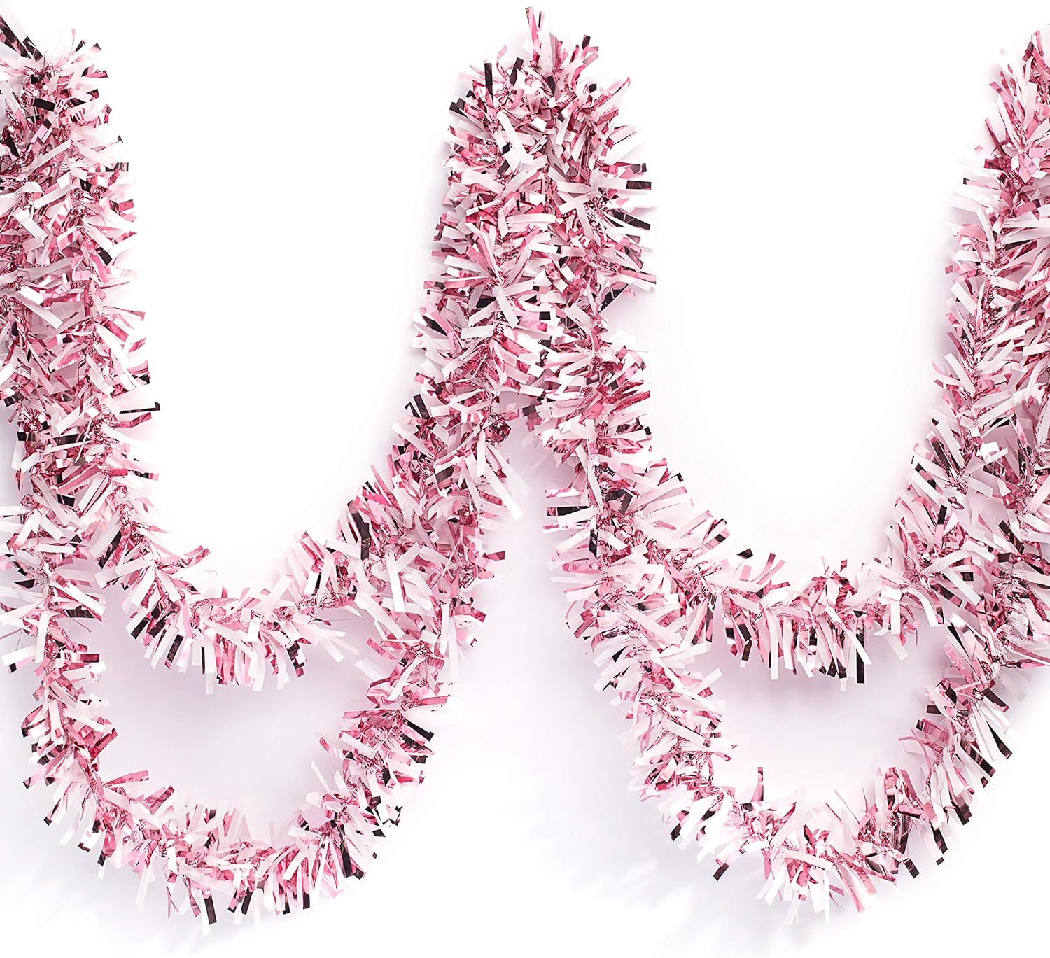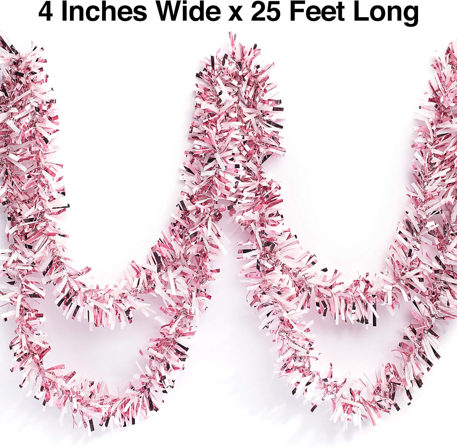 Anderson's Light Pink & White Sparkle Glitter Metallic Tinsel Twist for Trailer Or Golf Cart, 4 inches Wide x 25 ft Long, Christmas, Patriotic and Holiday Garland Decor for Parties and Parades