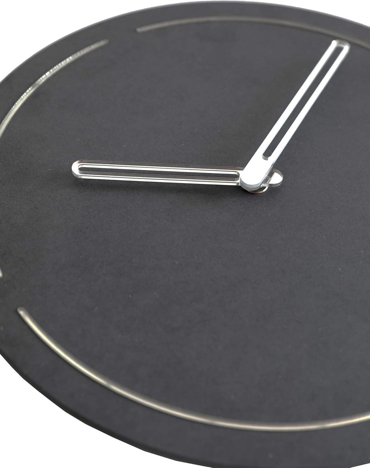 - Measures 10.25”X 10.25” and features a misty black FORESCOLOR ecoboard dial that is 0.2” thick. The silver clock hands are made of polished acrylic and the clock face has a matching minimalist design in silver. Operates with 1 AA battery which is not included.