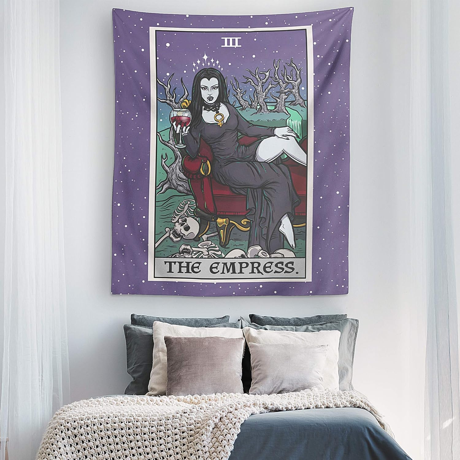 The Empress Tarot Card Tapestry - Female Vampire - Gothic Halloween Home Decor Wall Hanging (80" x 68")