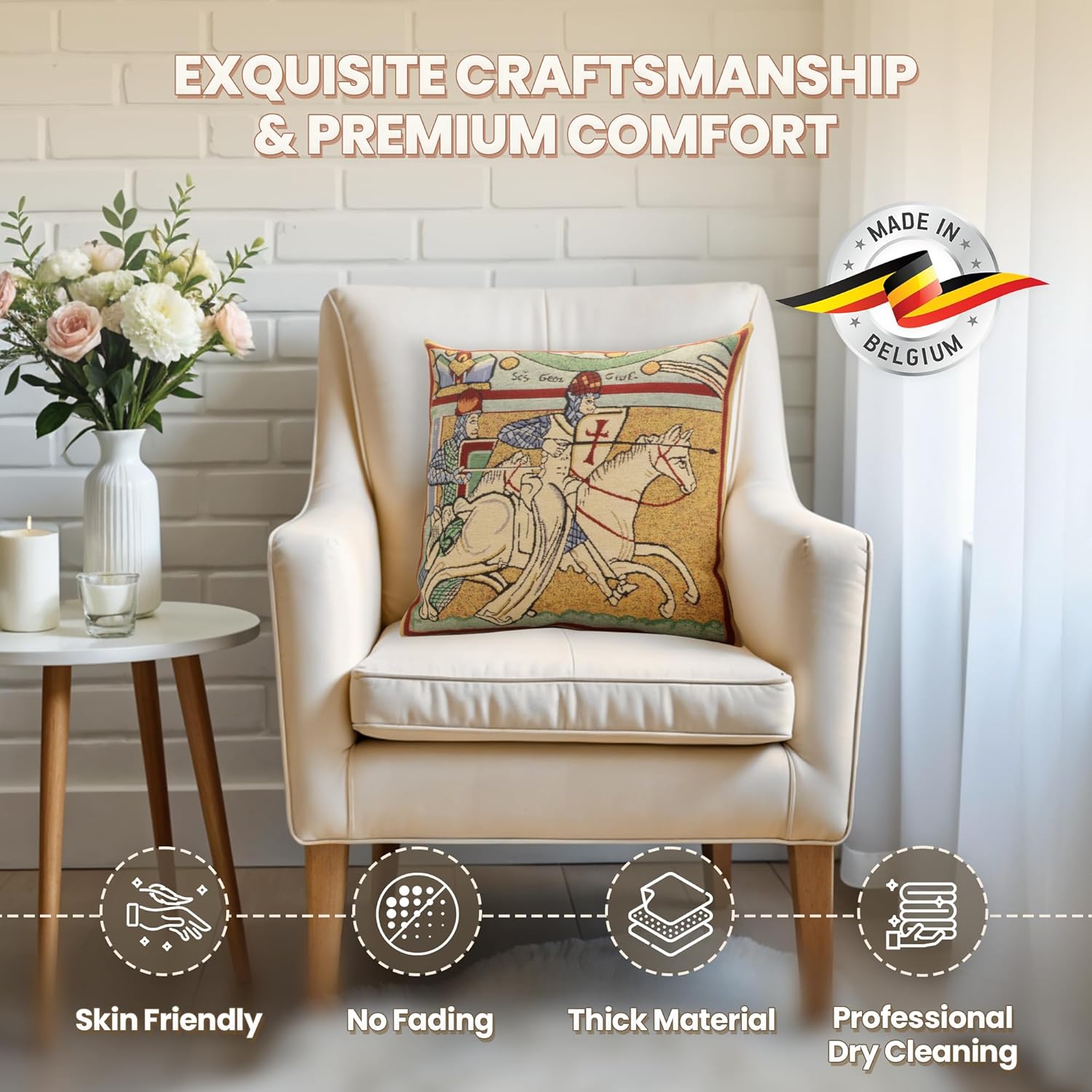 - Historic Knight-Themed Tapestry Art – Bring medieval valor and history into your home decor with this decorative knight throw pillow cover, inspired by European heraldry and classic crusader scenes. Featuring two knights on horseback from the Chevaliers de St. Gregoire series, it adds noble charm to living rooms, reading nooks, or study spaces.