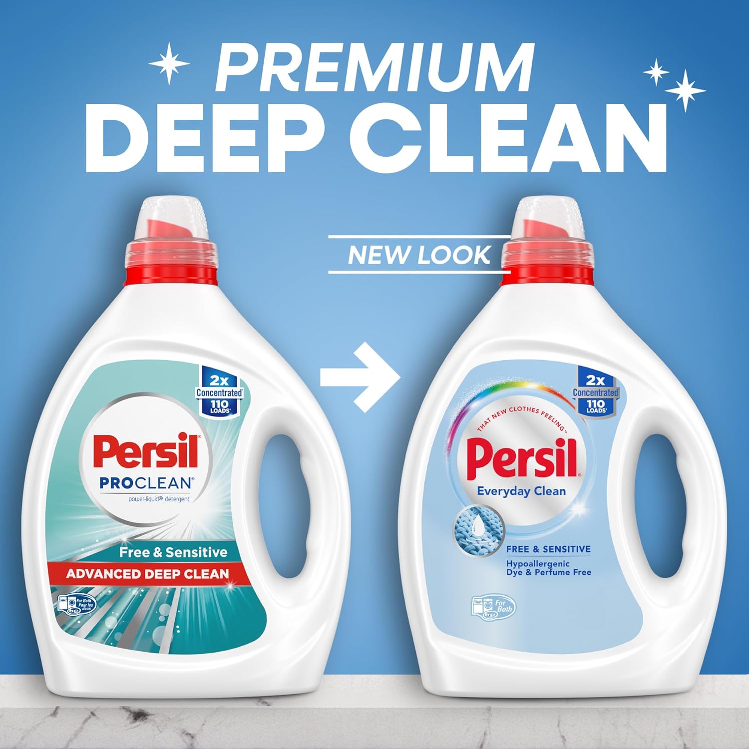 Persil Free & Sensitive Liquid Laundry Detergent, Unscented and Hypoallergenic for Sensitive Skin, 2X Concentrated, 82.5 fl oz, 110 Loads