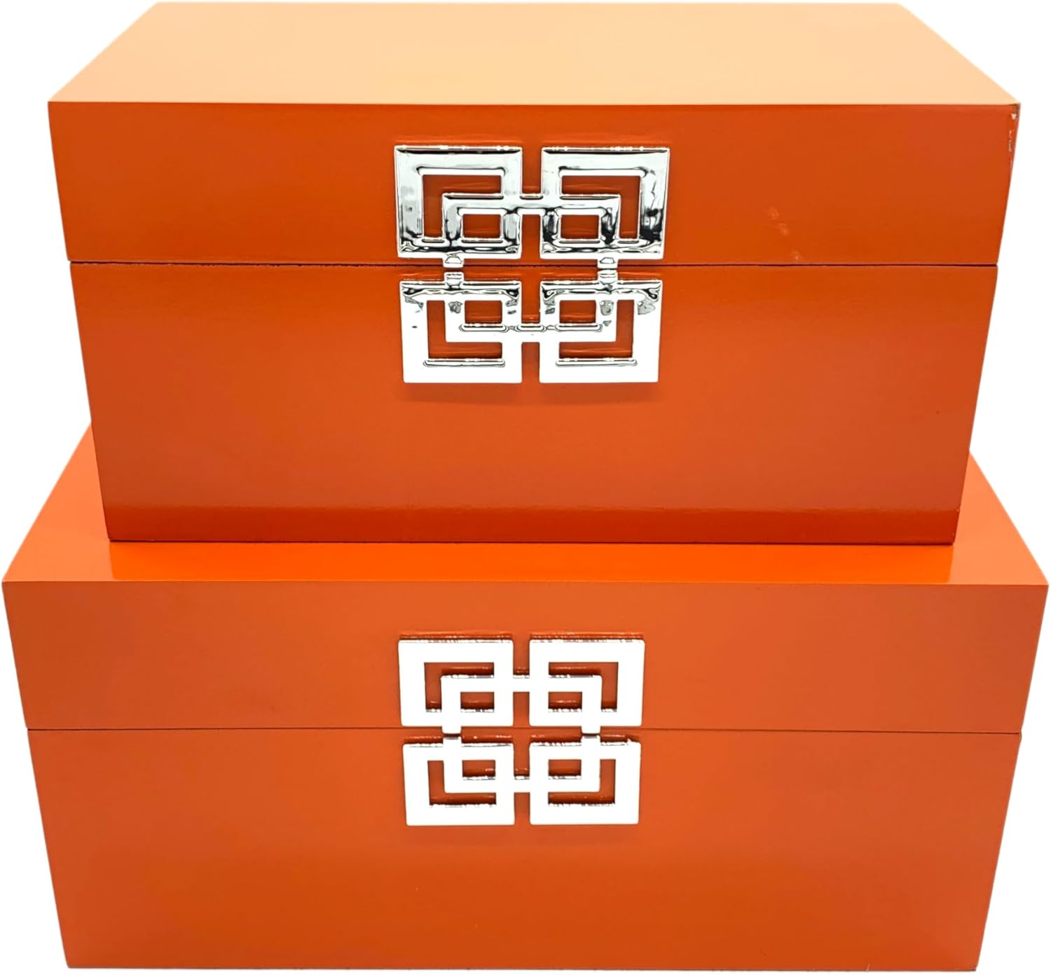Galt International Storage Boxes - Large & Small Decorative Storage Box w/Hinged Lid - Classic Design Wood Decor Boxes with Geometric Opening Clasp - Home & Office Storage - Set of 2 (Orange)