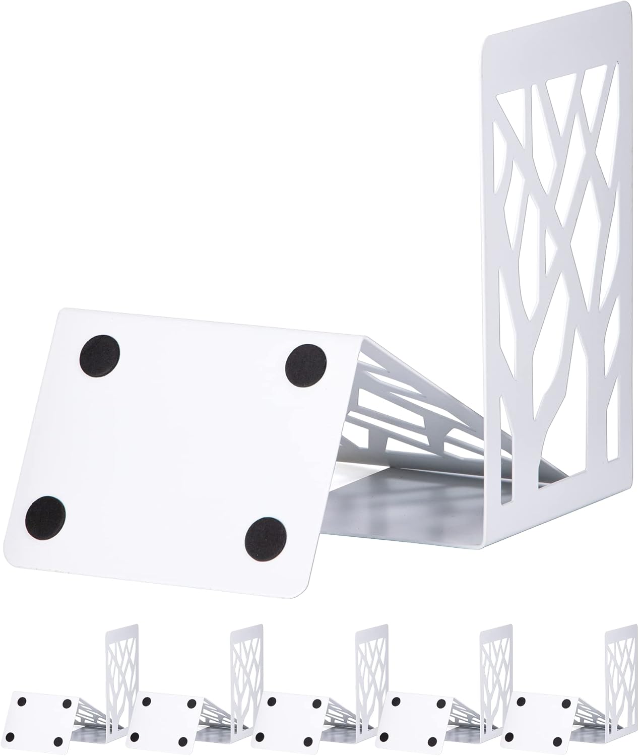 Book Ends, Bookends, Bookends for Shelves, Bookend, Book Ends for Heavy Books, White Metal Book Shelf Holder Home Decorative, Book Stoppers for Shelves, Bookend Supports 6 Pair