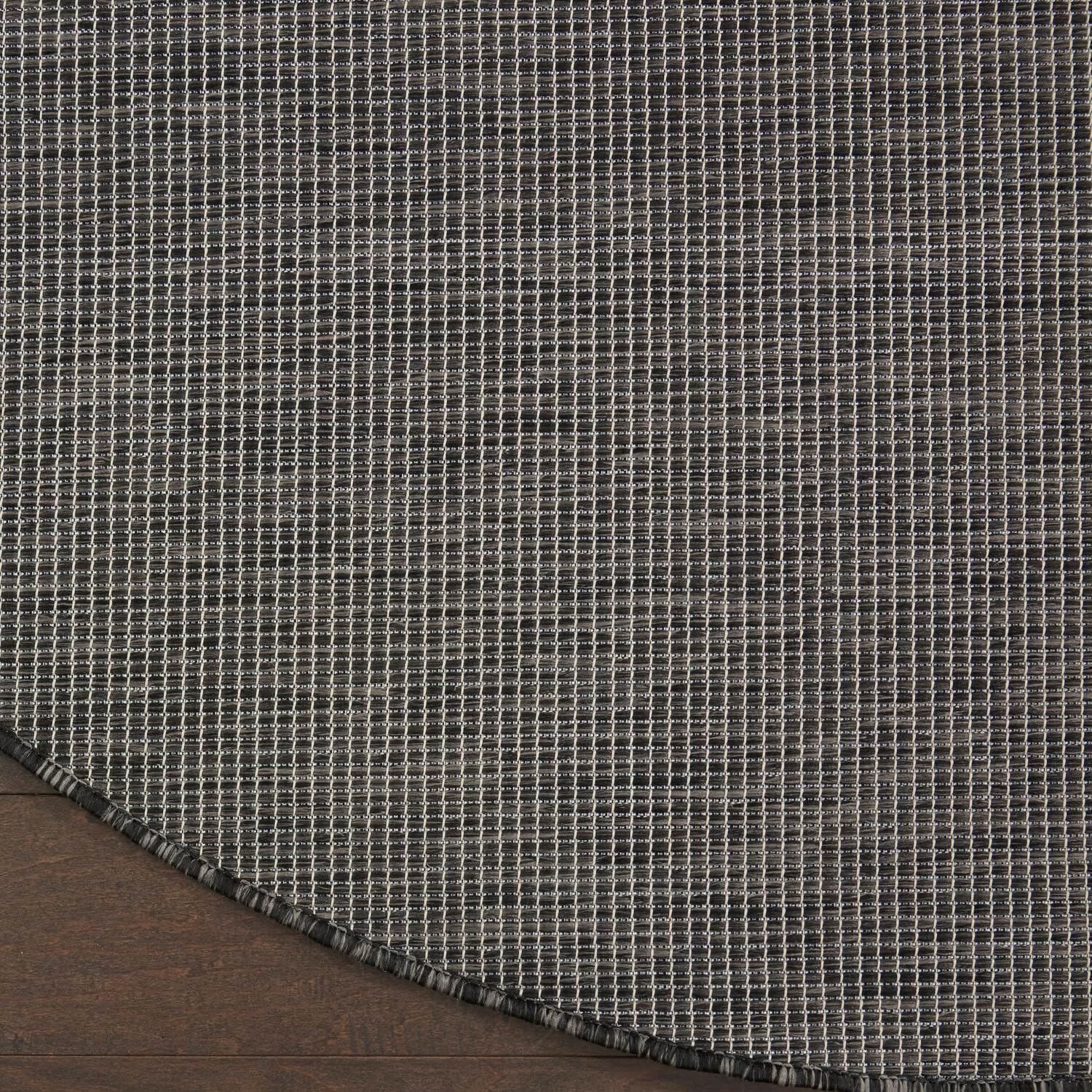 Nourison Positano Indoor/Outdoor Charcoal 6' x Round Area Rug, Easy Cleaning, Non Shedding, Bed Room, Living Room, Dining Room, Backyard, Deck, Patio (6 Round)