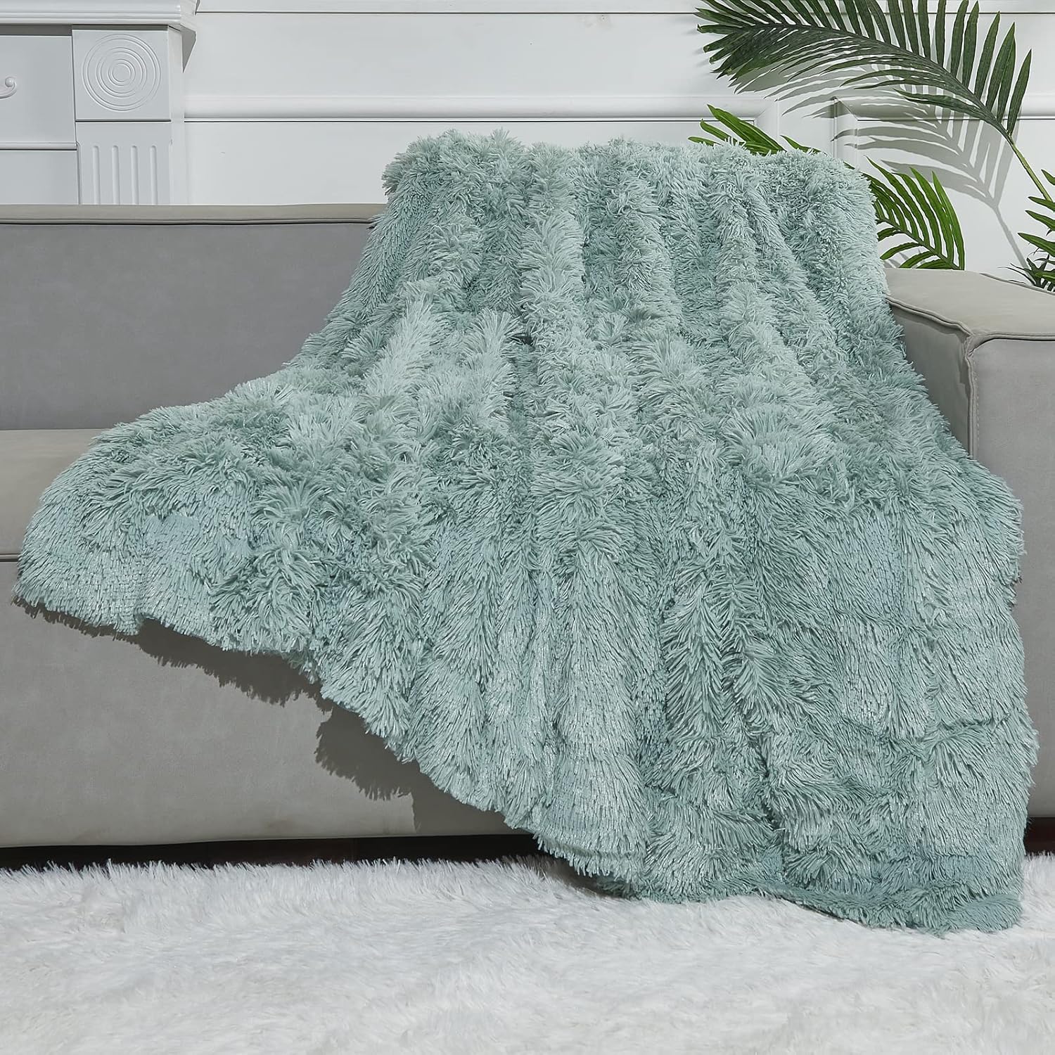 GONAAP Fuzzy Faux Fur Throw Blanket Ice Blue Super Soft Cozy Plush Fuzzy Shaggy Blanket for Couch Sofa Bed (Ice Blue, Throw(50"x60"))