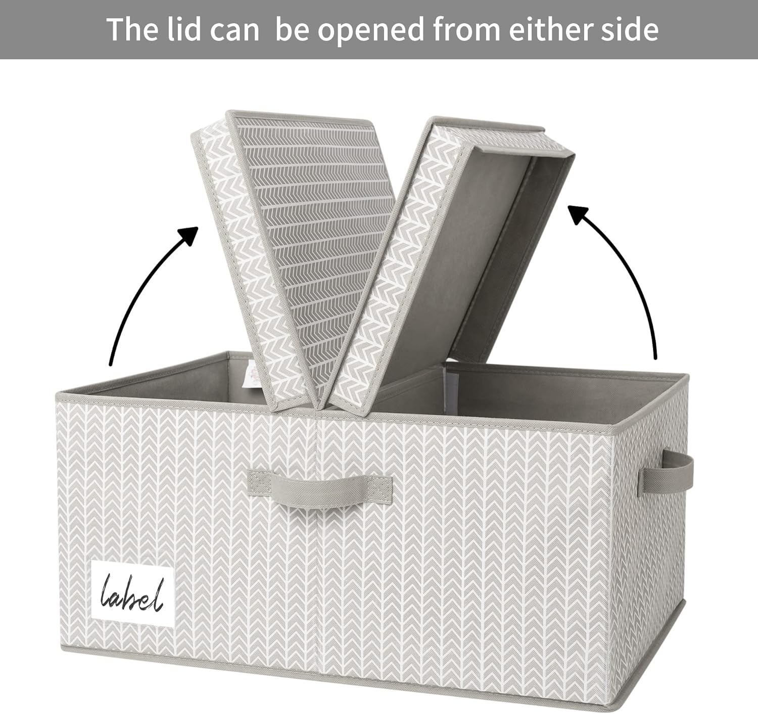 GRANNY SAYS Closet Storage Bins with lids, Fabric Storage Box with Lid, Clothes Bins Storage for Closet, Shelf Baskets for Living Room Wardrobe Shelves, Jumbo, Gray/White, 1-Pack