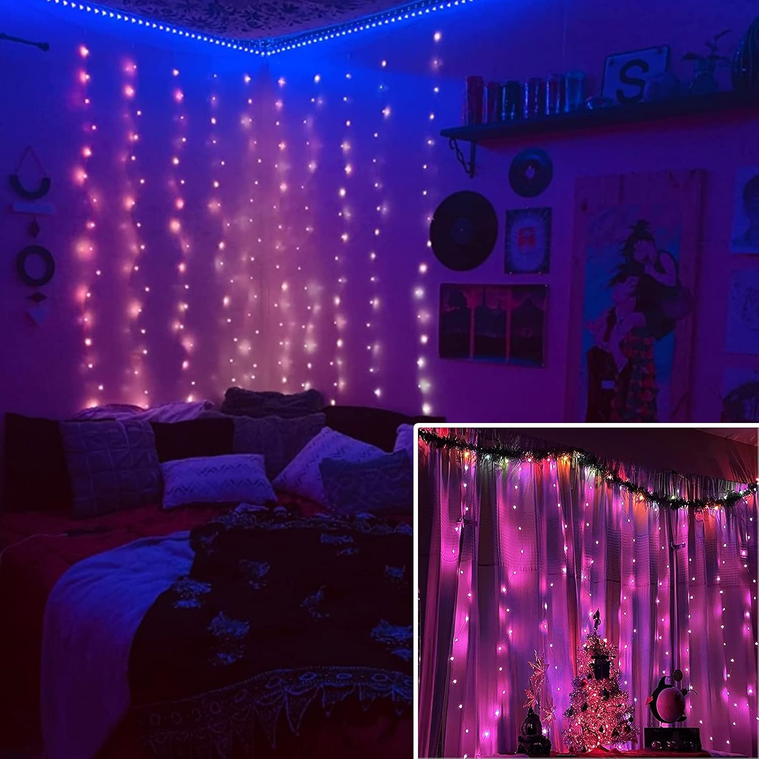 Fairy Curtain Lights - 16-Color Changing String Lights with Remote, 4 Lighting Modes, Ideal for Christmas, Weddings, Parties, Room Decor - Rainbow Backdrop