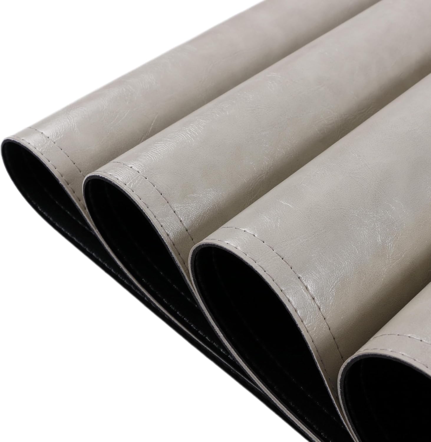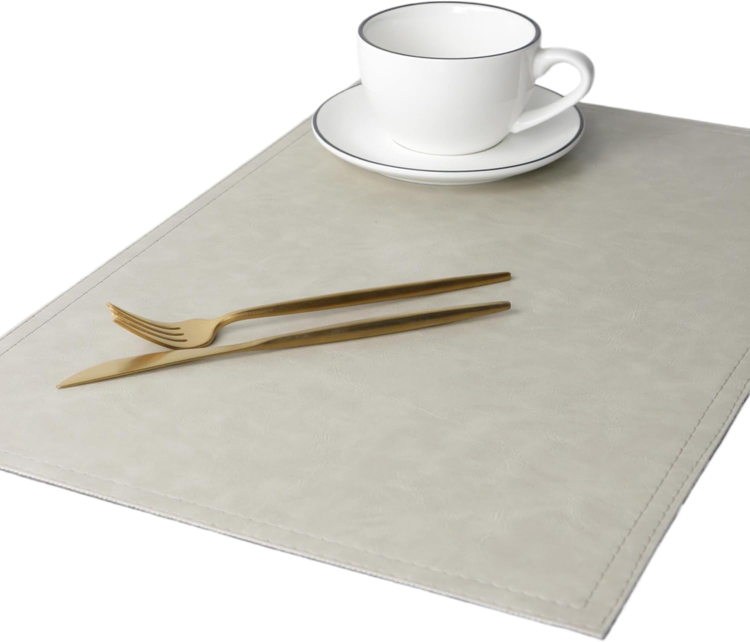 Waterproof PU Placemats, Faux Leather Dining Table Mat, Set of 4, Easy to Wipe Off Scrub Vinyl Mat, Heat & Stain Resistant for Office Conference Table, Home Decor G Parchment White