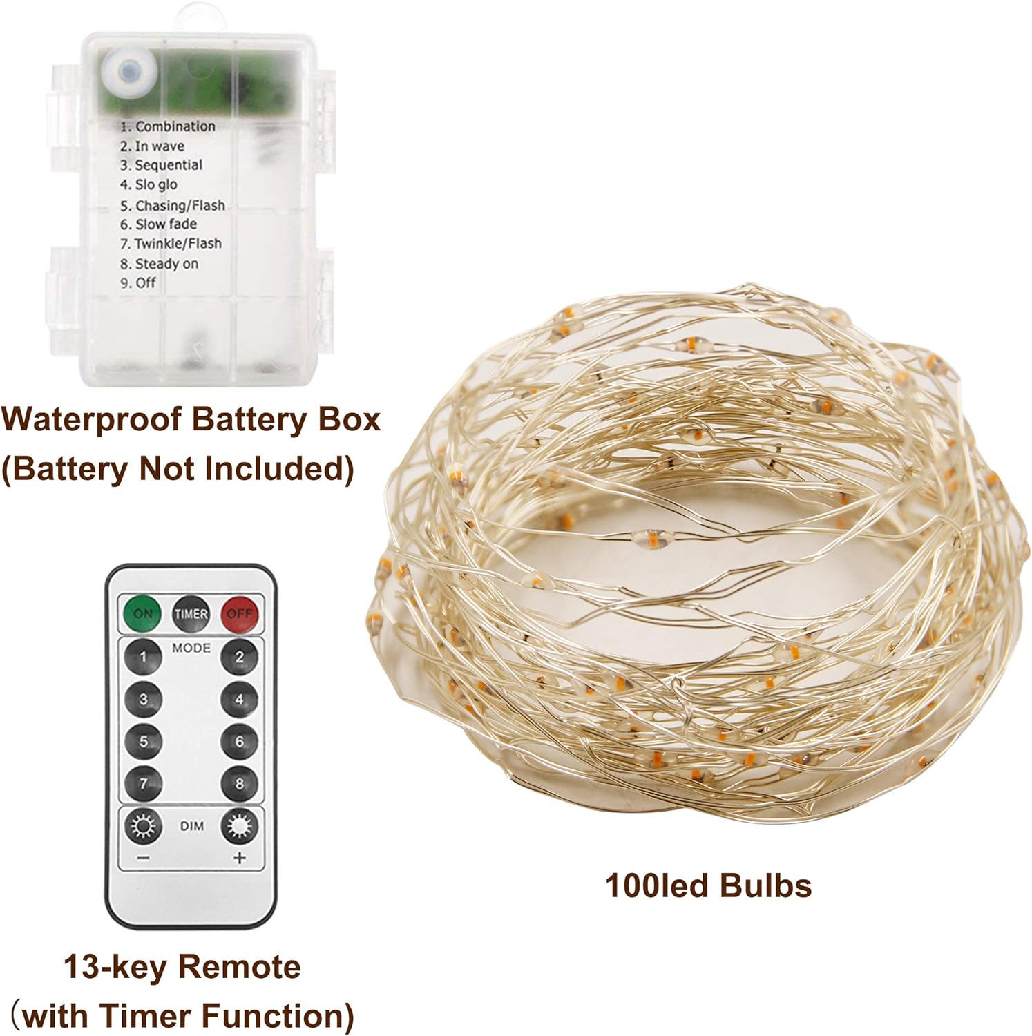 - Battery Powered and Remote Control: Require 3 AA batteries for each string lights for adjust modes. With a remote in hand, you can adjust the brightness, switch 8 modes, set timer for 6 hours on and 18 hours off per day