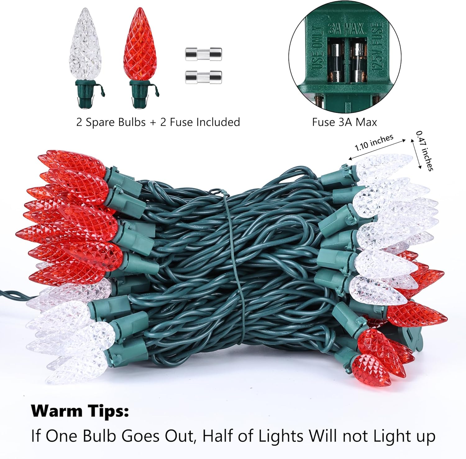 - Super Bright: Brighter than traditional incandescent string lights, make your lighting display bright and festive with these red & white christmas lights