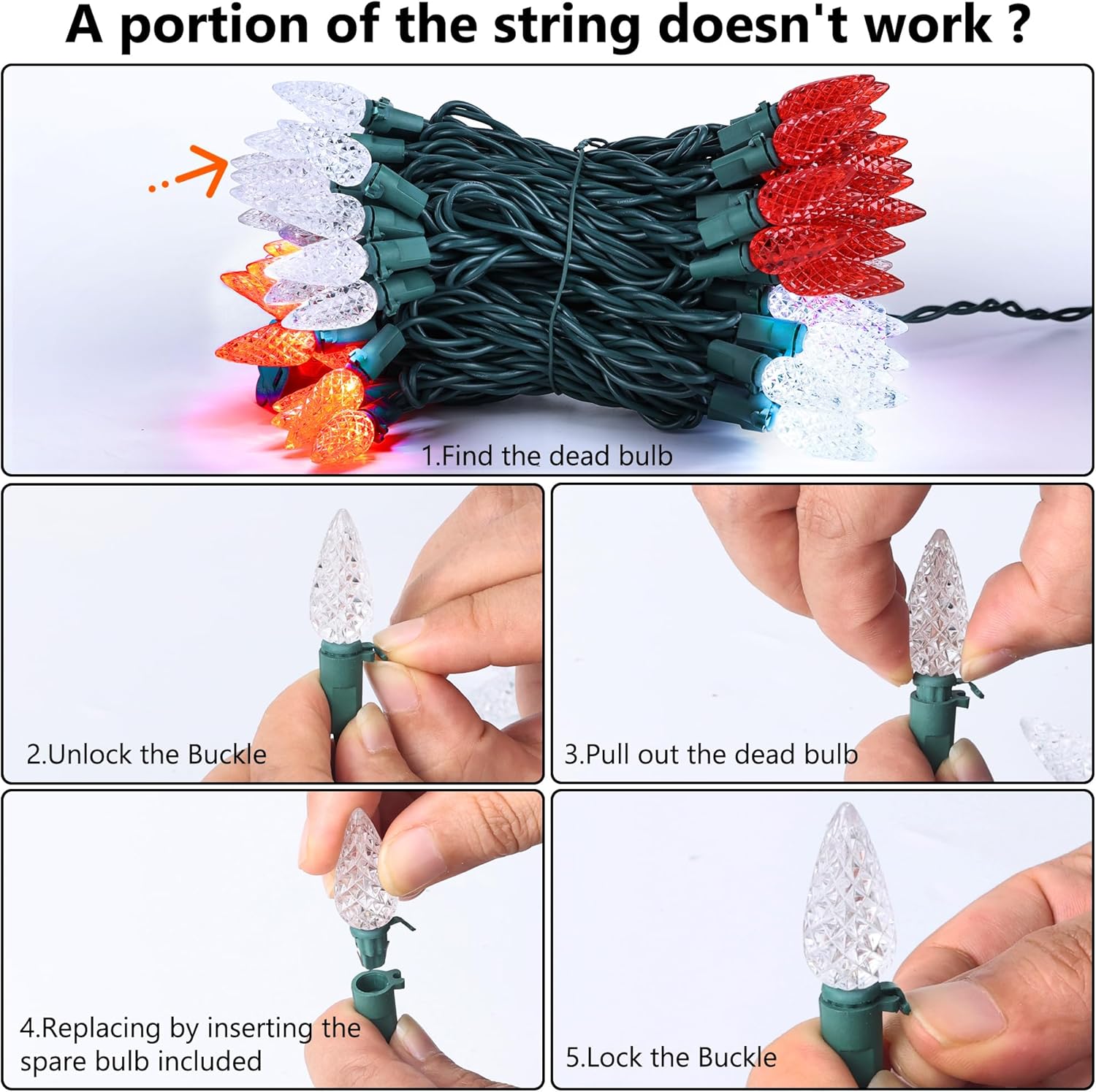 - Connectable: Connect end to end up to 20 sets(2000 lights), allow you to decorate your home both inside and outside with your desired length; UL Certified great value and quality, Replaceable fuse plug; Extra bulbs and fuse included.