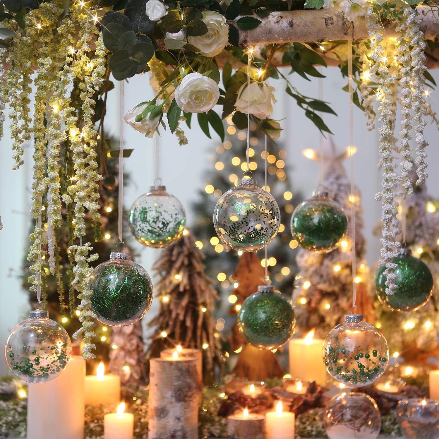 - TRANSPARENT & SPARKLING - These Christmas ball ornaments feature clear glaze base with sparkling decorations like glitter, sequins, tinsel and beads to provide a stunning shimmering look in the light. They will be perfect for decorating your home and become part of your holiday tradition