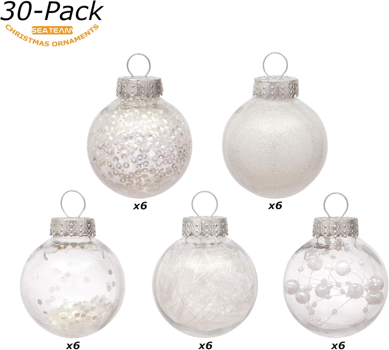 Sea Team Shatterproof Clear Plastic Christmas Ball Ornaments Decorative Xmas Balls Baubles Set with Stuffed Delicate Decorations (50 mm/1.97"/30-Pack, White)