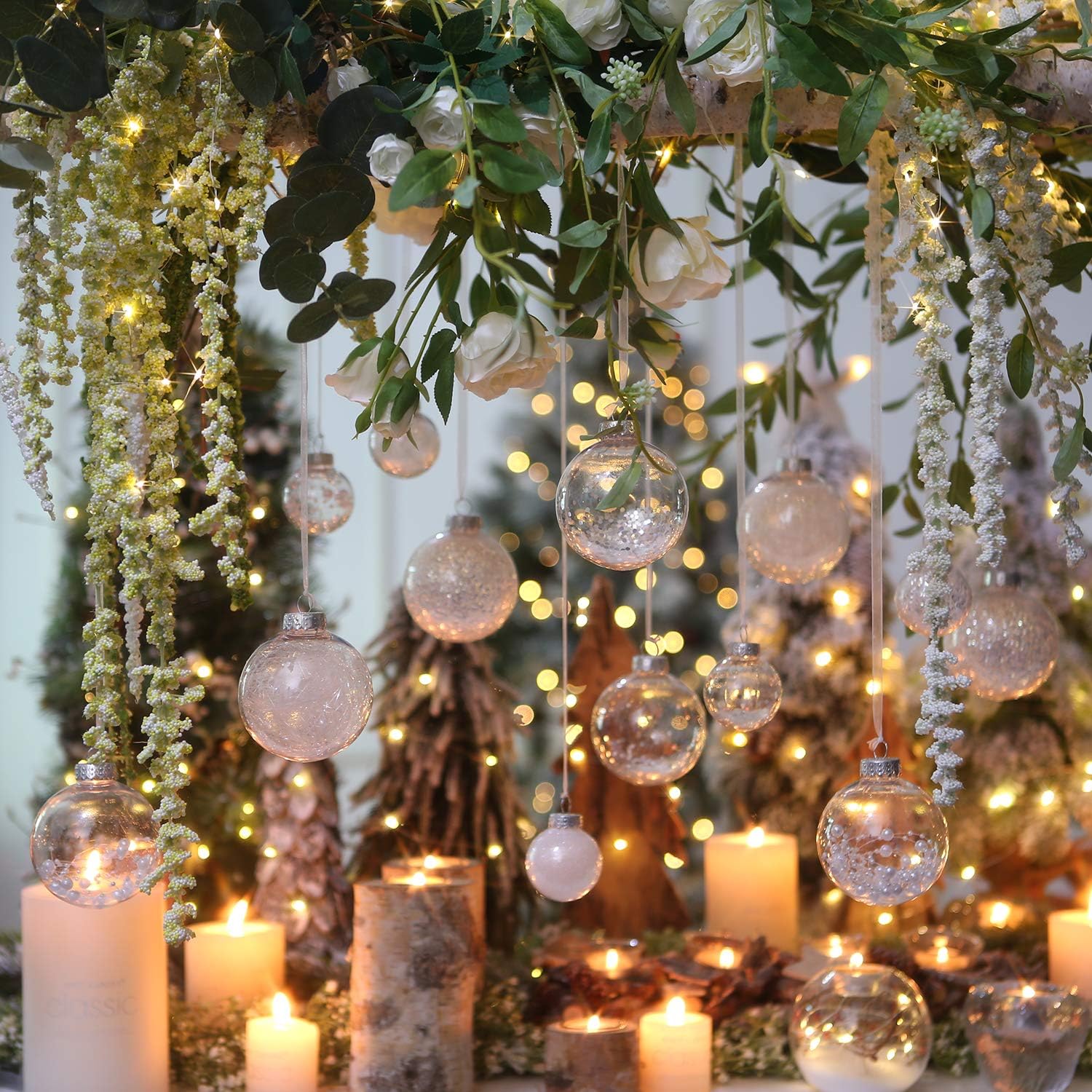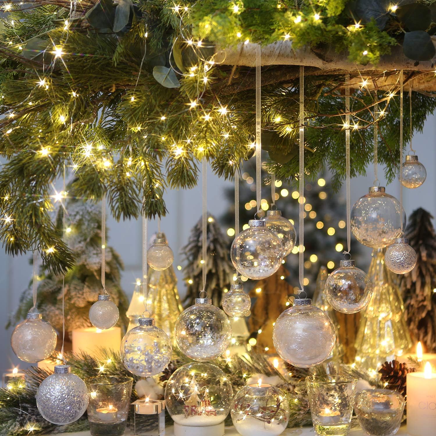 - TRANSPARENT & SPARKLING - These Christmas ball ornaments feature clear glaze base with sparkling decorations like glitter, sequins, tinsel and beads to provide a stunning shimmering look in the light. They will be perfect for decorating your home and become part of your holiday tradition