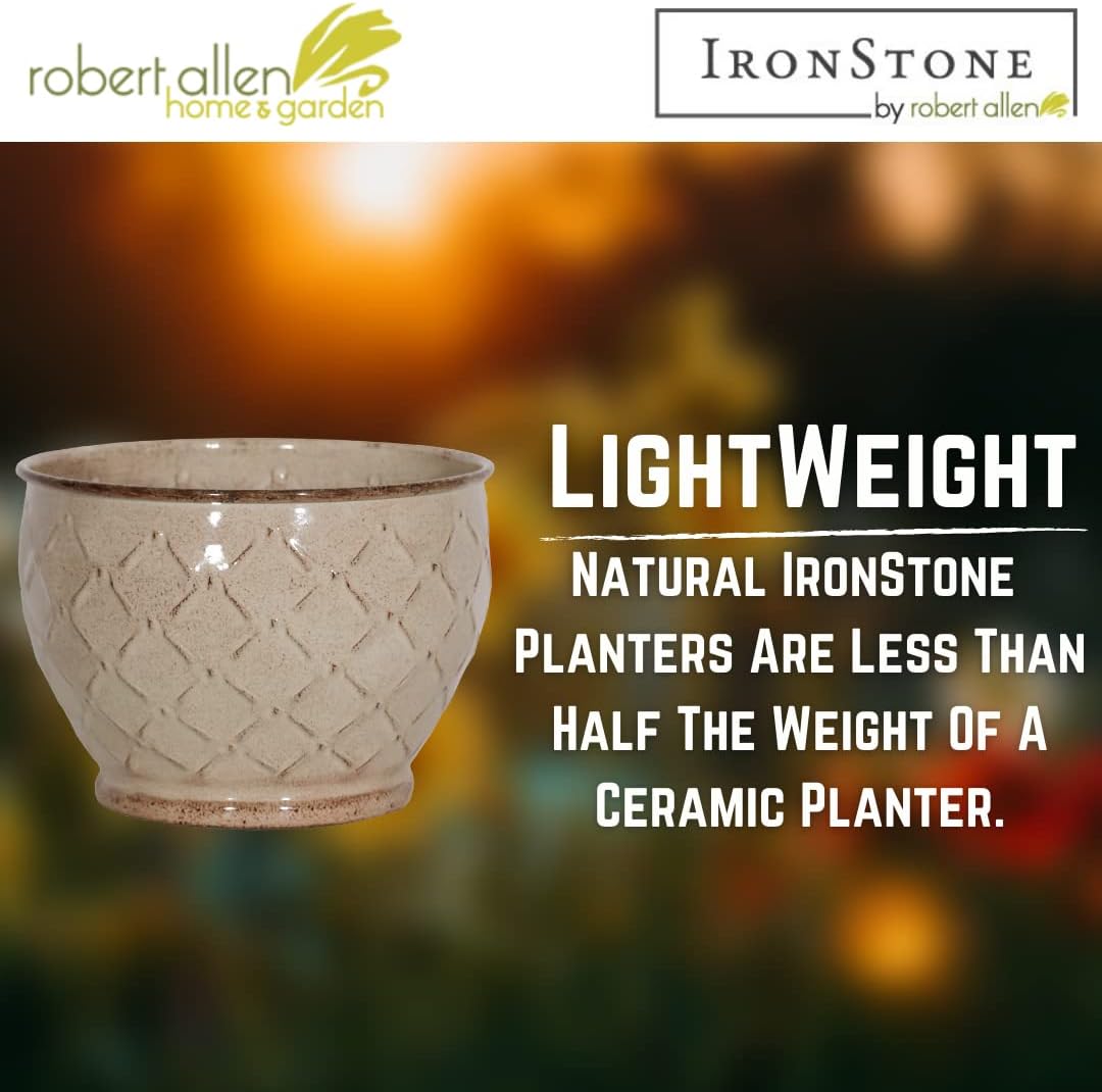 - -DRAINAGE – Contains a removable drain plug. Each IronStone planter comes with a drain plug that proves very useful whether inside or out during the changing seasons.