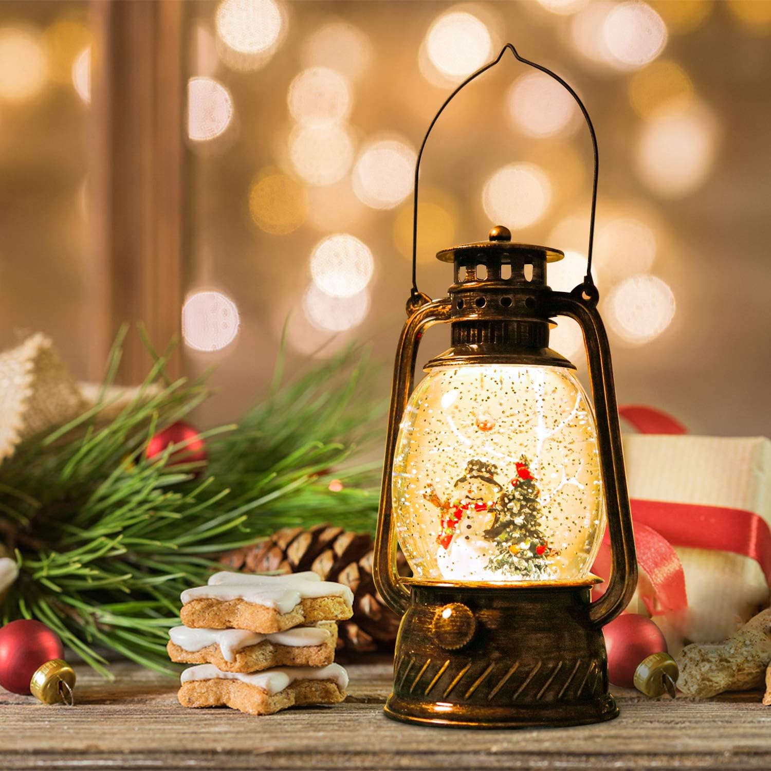 - ❄️ CONTINUOUS SWIRLING GLITTER - Turn on the switch on the bottom, a warm LED would shine down on the snowman figurine to give our water lantern a magic look. With swirling glitter around the inside automatically, the lighted snow globe lantern can create an eye-catching sparkle, which will definitely entertain you.