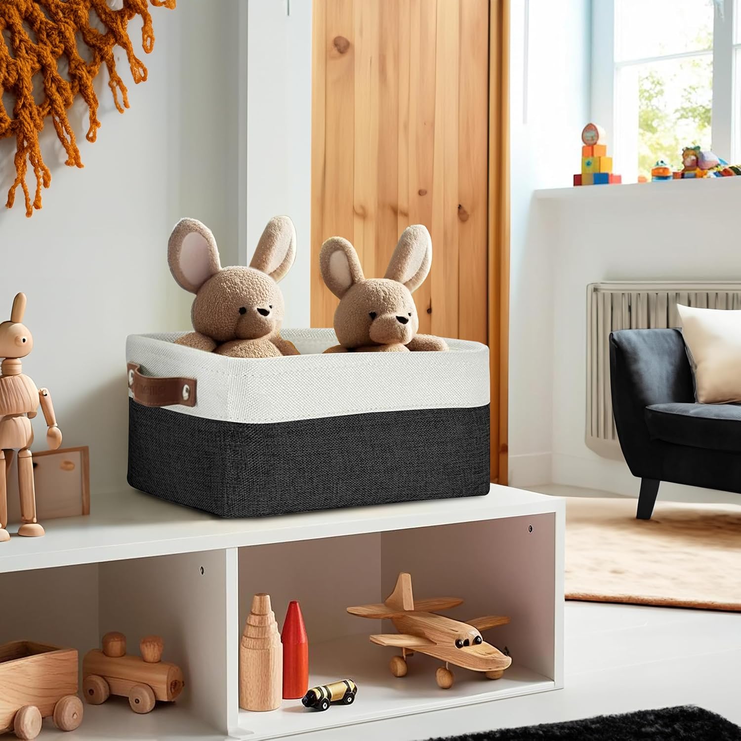 - Durable Design: DECOMOMO's baskets feature a sturdy metal frame, extra thick EVA exterior, polyester interior, 2.5mm MDF fiberboard bottom, and faux leather handles capable of holding up to 15 lbs.