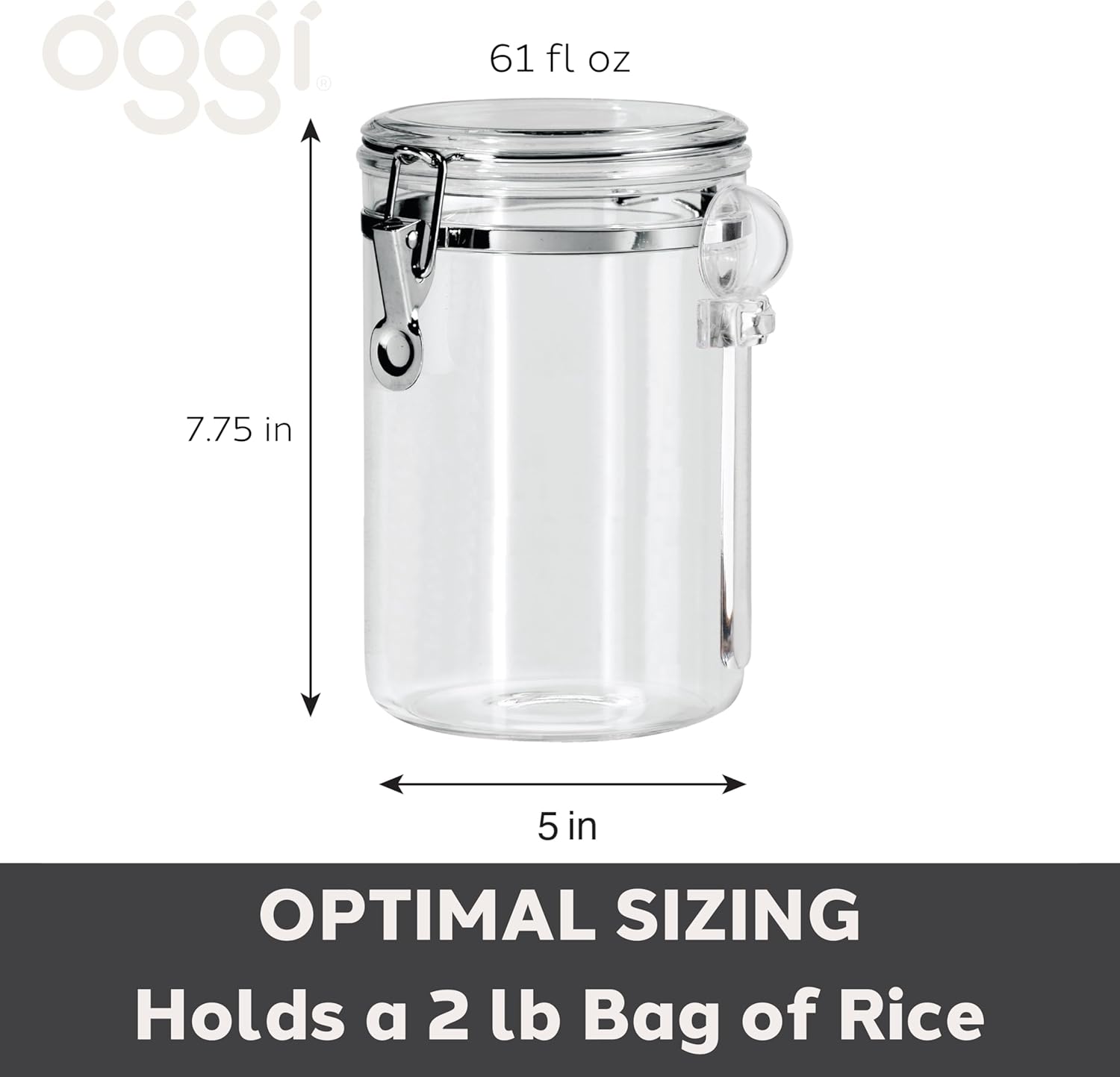 OGGI Clear Canister Airtight 61oz - Clamp Lid & Spoon - Airtight Food Storage Containers, Ideal for Kitchen & Pantry Storage of Bulk, Dry Food Including Flour, Sugar, Coffee, Rice, Tea, Spices & Herbs
