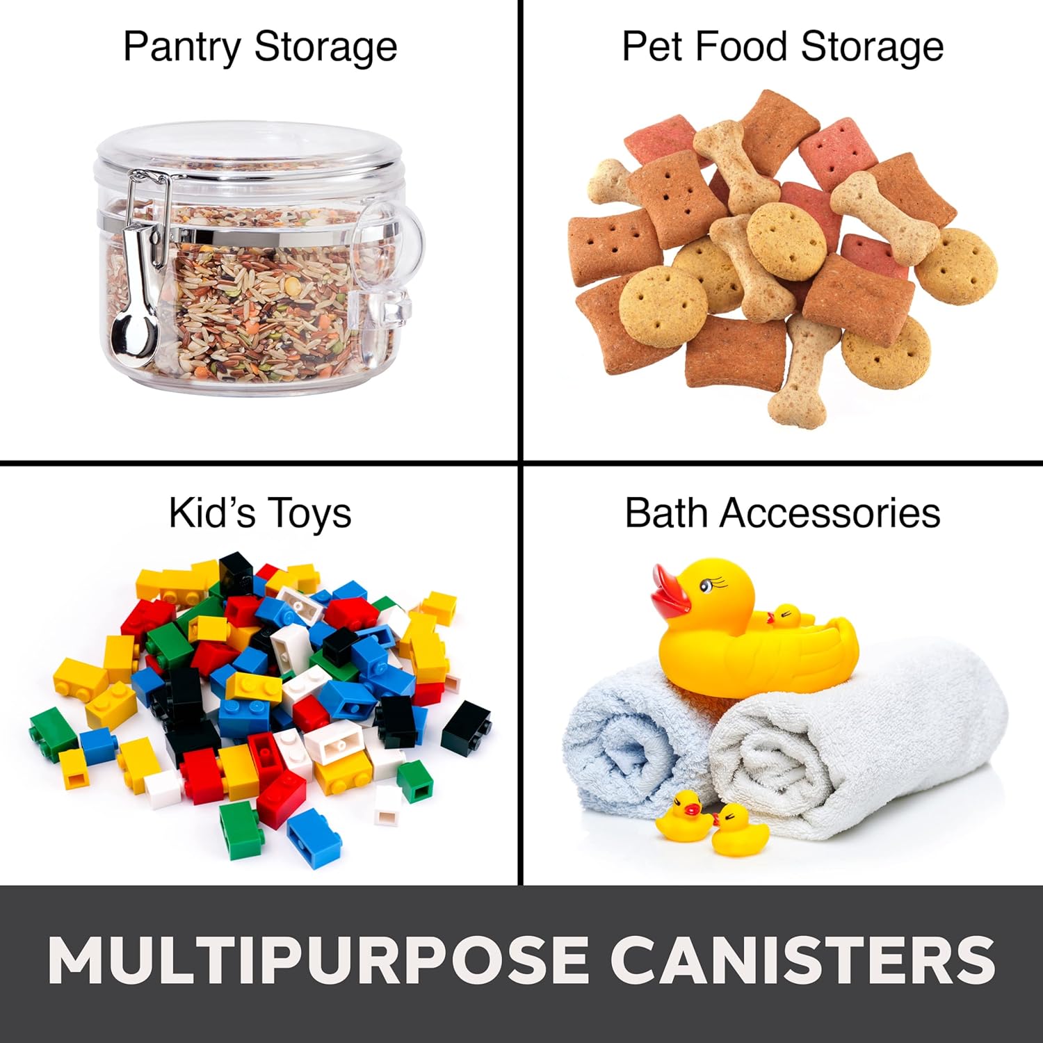 - VERY VERSATILE 38 fl oz CONTAINER: Great for storing cookies, sugar, flour, cereal, pasta, coffee, tea, spices, candy, rice and any other dry kitchen staples. Use the included scoop to help access contents.