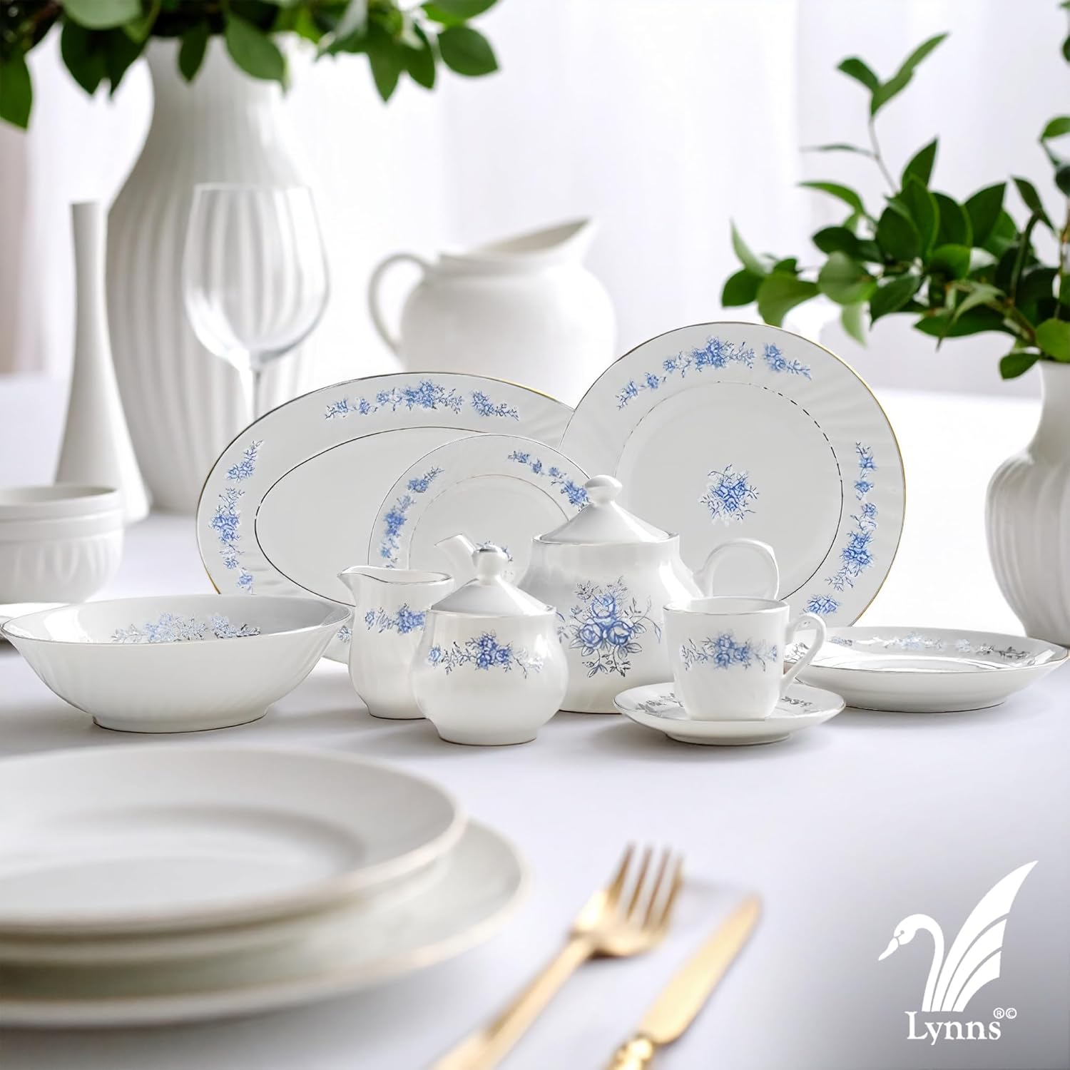 Lynns Paradise Royal Rose 14-Inch Oval Platter, Set of 2, Blue; Heavy Duty; Chip Resistant; Lead and Cadmium Free; Freezer to Oven Safe up to 500°F
