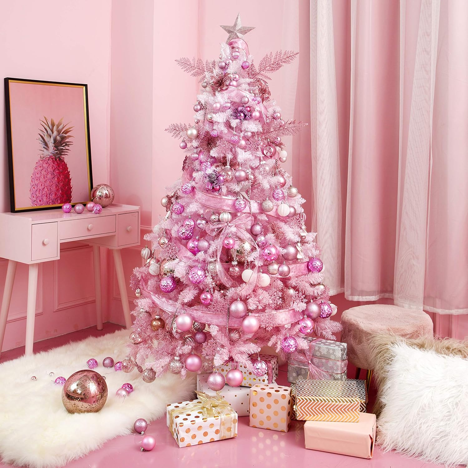 Christmas Ball Ornaments for Christmas Decorations - 41 Pieces Xmas Tree Pink Shatterproof Ball Ornaments with Hanging Loop for Holiday and Party Decoration