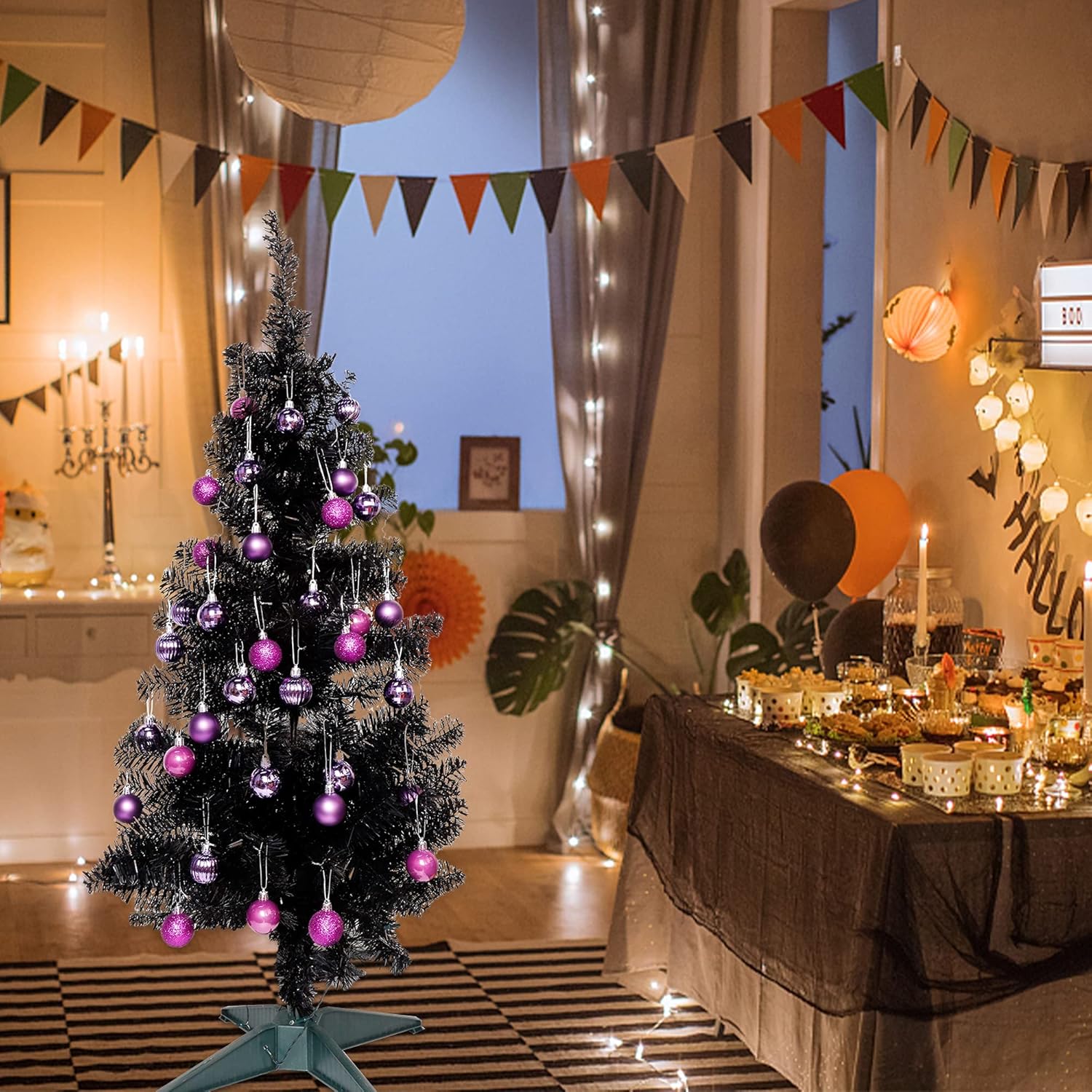 Lulu Home Halloween Hanging Ornaments, 34 Ct 1.57" Pre-Strung Plastic Balls, Shatterproof Barrel Packed Balls for Holiday Party Wreath Tabletop Tree Decorations, Purple