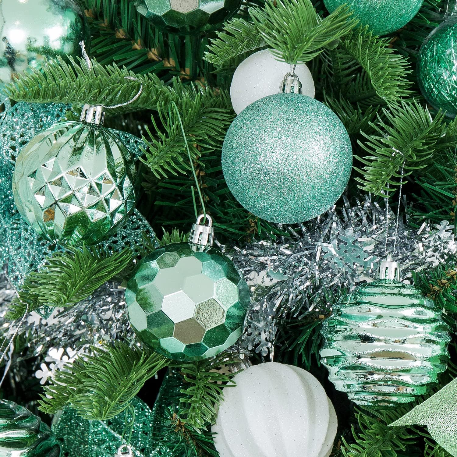 - PRODUCT DESIGN - Each Christmas ball ornament is made of high quality shatterproof plastic with top tier surface finishing processes: The glittering ball is double processed and make sure the glitter dust will not stick on your hands
