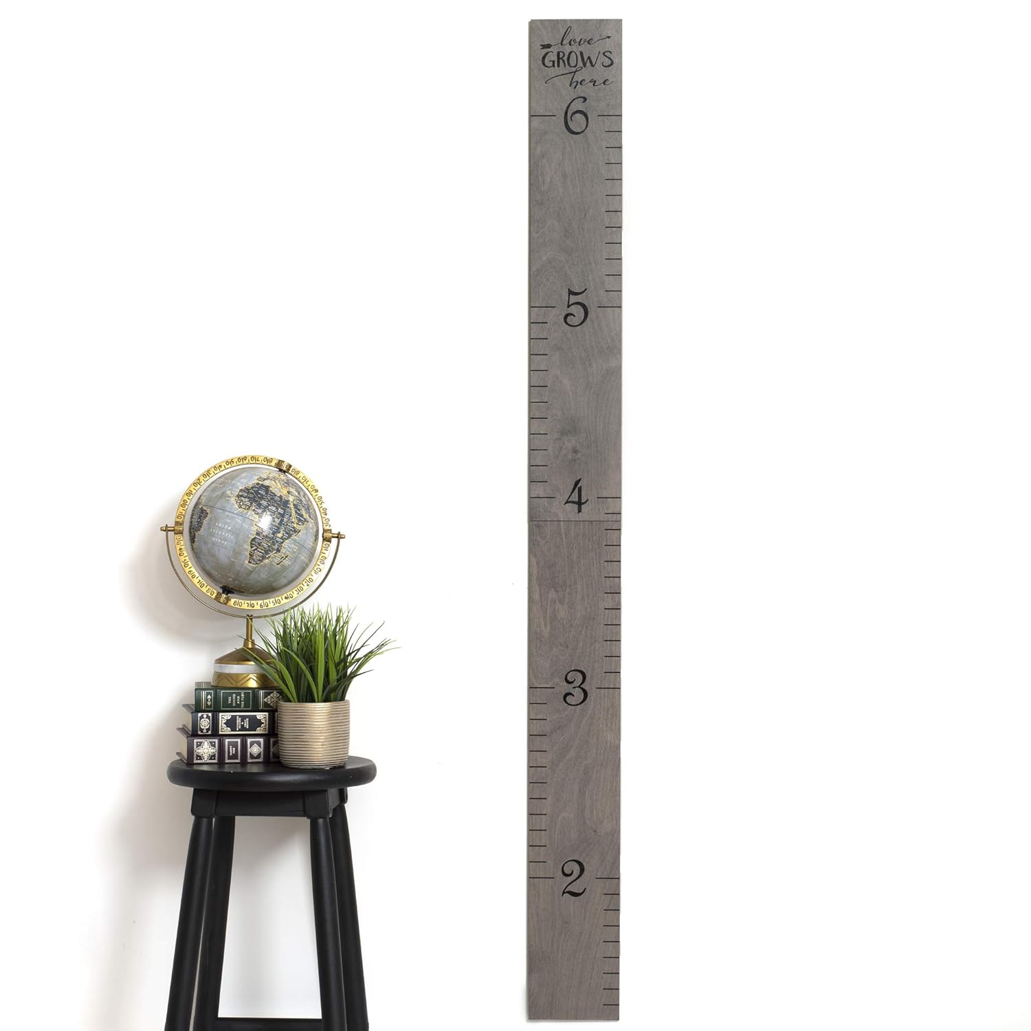 Wooden Growth Chart for Wall - Height Growth Chart for Kids, Kid Height Wall Chart, Height Measurement for Wall, Height Chart for Kids - Love Grows Here, Skinny Grey (63""x5.75"")