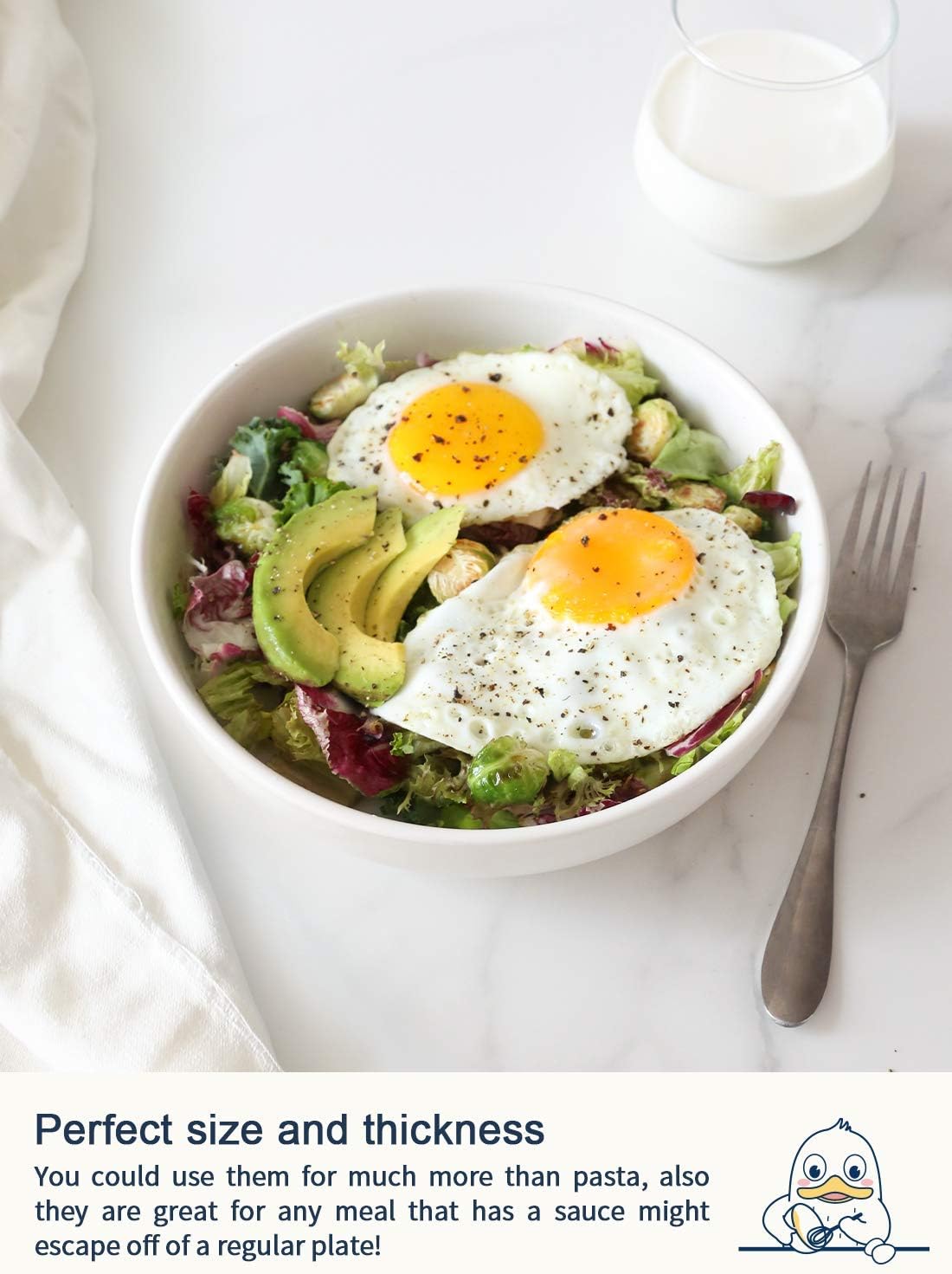 - A Simple And Trendy Shape:These LE TAUCI 32 ounce shallow bowls are suitable for pasta, soup, dessert, ice cream, rice, beans and so on. You would find you could use them for much more than pasta. They are also great for any meal that has a sauce that might escape off of a regular plate