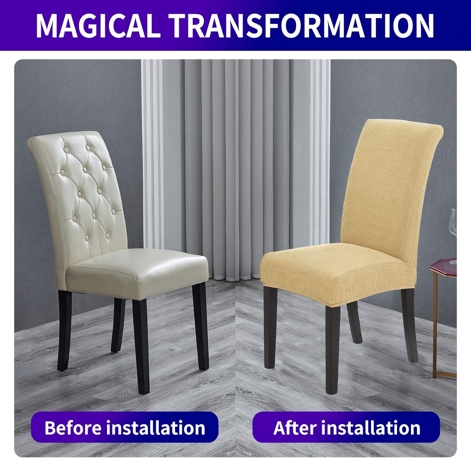 Howhic Stretch Chair Covers for Dining Room Set of 4, Removable Washable Dining Room Chair Covers, Dining Chair Slipcovers Seat Protector, Great Decoration for Home and Banquet (Champagne, 4 Pack)