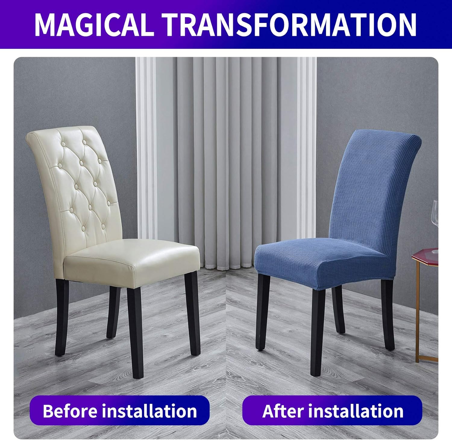 - Easy Installation, Simple Care. Easily slip on, instantly transform chairs to a brand new look. Machine washable in cold water, gentle cycle, no bleach, Ironing free.