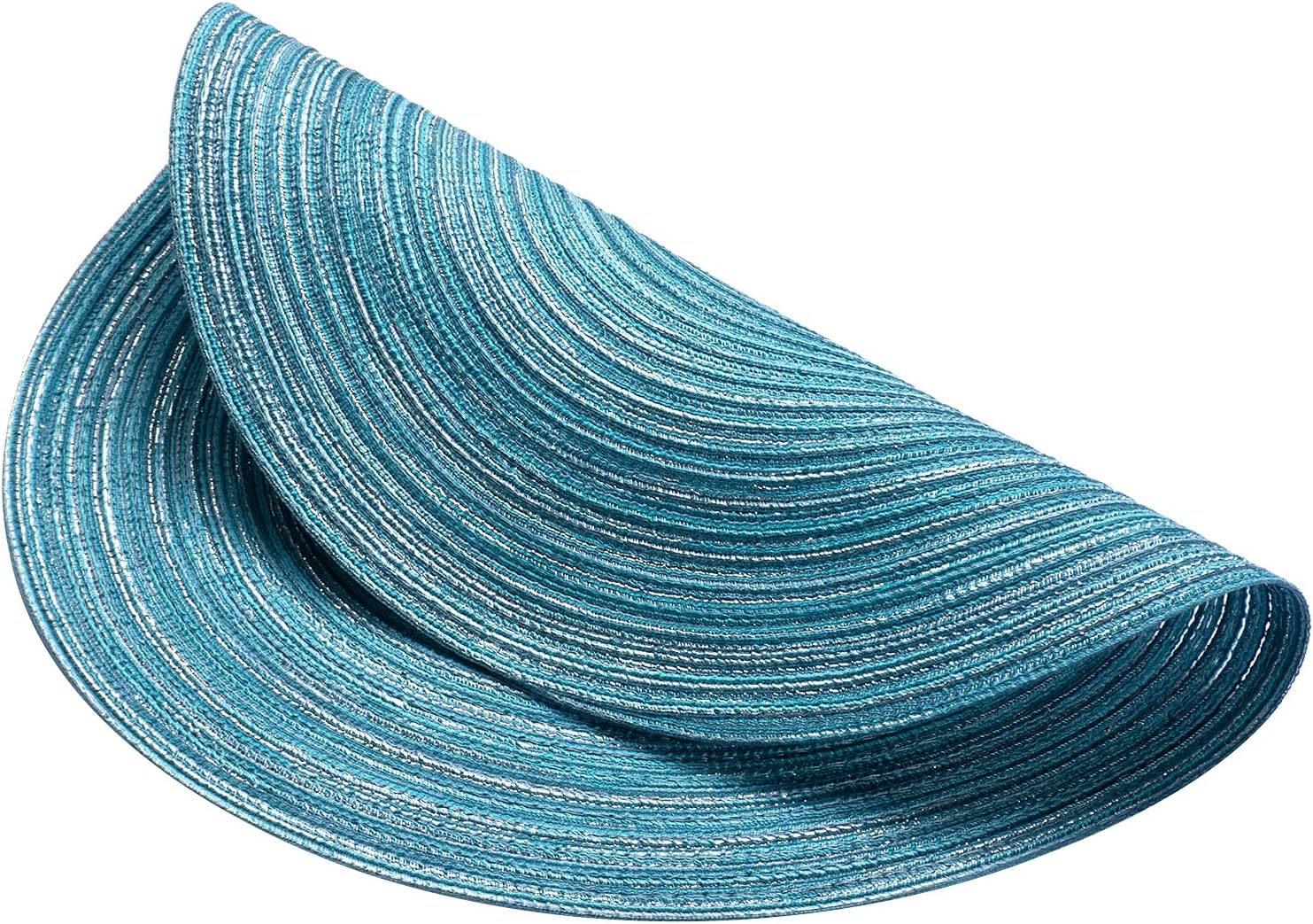 AHHFSMEI Round Braided Placemats Set of 6 Round Table Mats for Dining Tables Natural Woven Heat Resistant Place mats 15 Inch (Blue Silver)