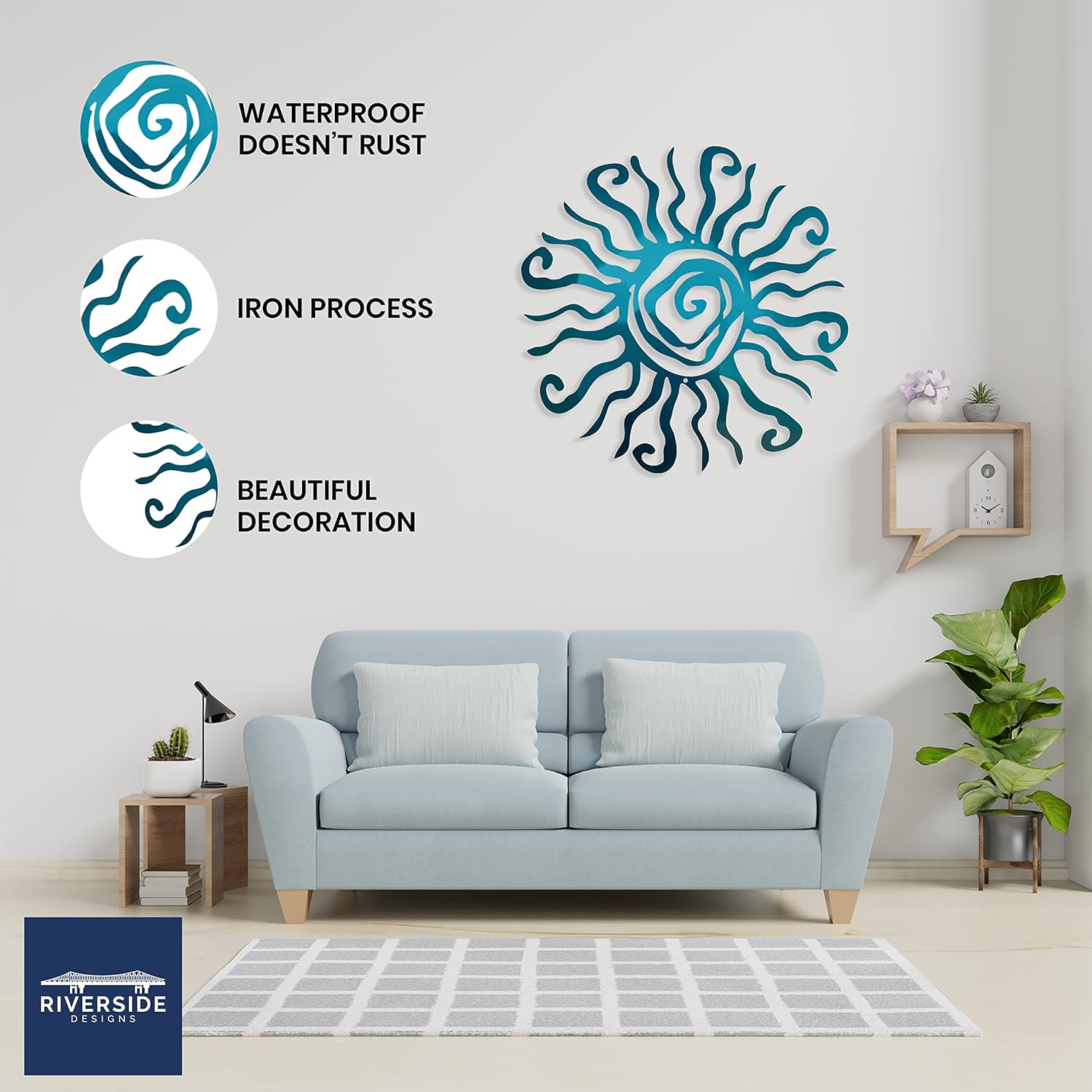 Riverside Designs Wacky Sun Metal Wall Art Indoor/Outdoor Decor - 36" Teal Rust Proof Wall Sculpture - Made in USA - Ideal for Bedroom, Garden, Home, Patio and Farmhouse