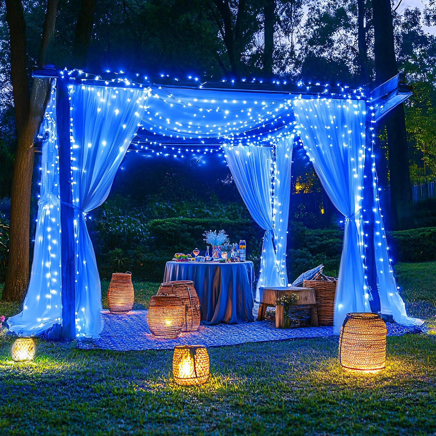 - Waterproof Solar Christmas Lights: 100 LED blue solar string lights are waterproof and can withstand rain and snow for indoor and outdoor use.