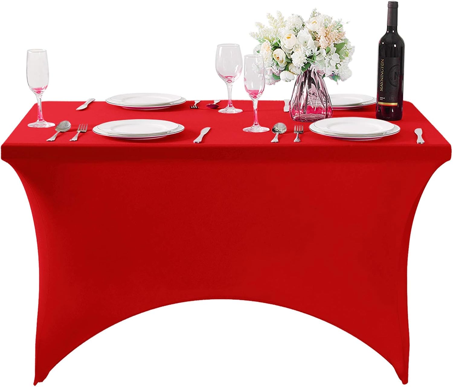 Spandex Table Cover for 4FT or 6ft or 8ft Table Universal Fitted Stretch Tablecloth for Party, Banquet, Wedding and Events-Red