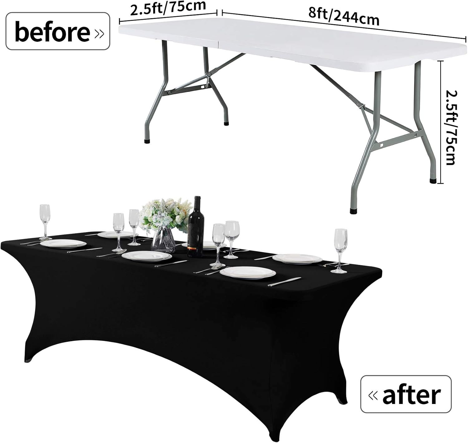 Spandex Table Cover for 8FT or 4ft or 6ft Table Universal Fitted Stretch Tablecloth for Party, Banquet, Wedding and Events-Black