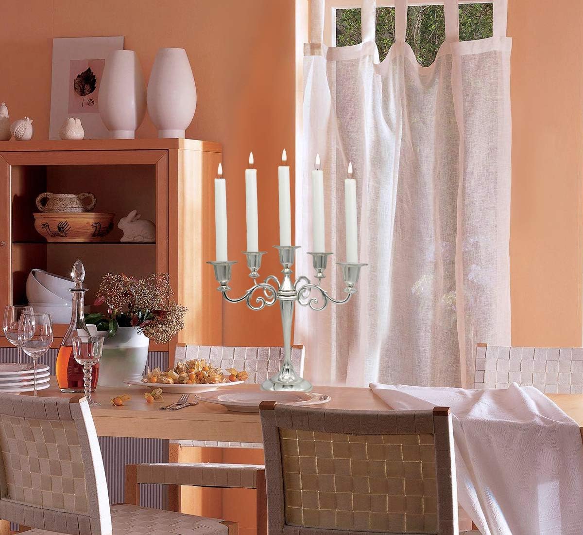 - Size: there are 5 lights,10.4 inch tall candle holder,the size of each candle head is 1.7x1.6 inch.