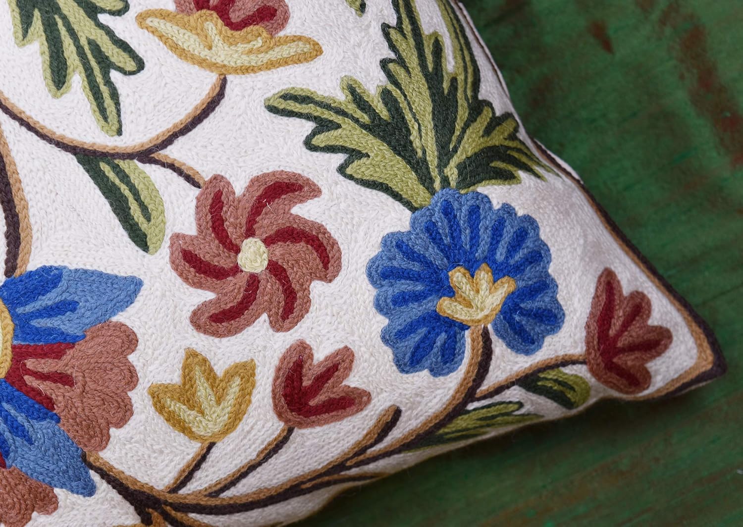 - ๐ธ CREAM FLORAL FRENCH STYLE PILLOW COVER - HAND EMBROIDERED: Elevate your home decor with our exquisite Cream Floral French Style Pillow Cover. Crafted by the finest artisans, these hand-embroidered floral pillows draw inspiration from contemporary modern floral art designs. Each stitch is meticulously executed in soft wool, resulting in a masterpiece that adds an extraordinary touch to your home decor. Immerse yourself in the fine chain-stitch hand embroidery that adorns the entire front side