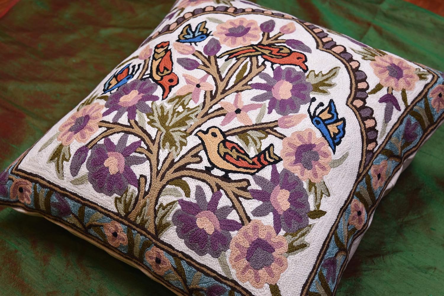 Tree of Life Pillow Cover Lavender Floral Pillowcase Botanical Flower Pillows Plants Farmhouse Traditional Chair Cushions Needlepoint Hand Embroidered Wool Size - 18x18