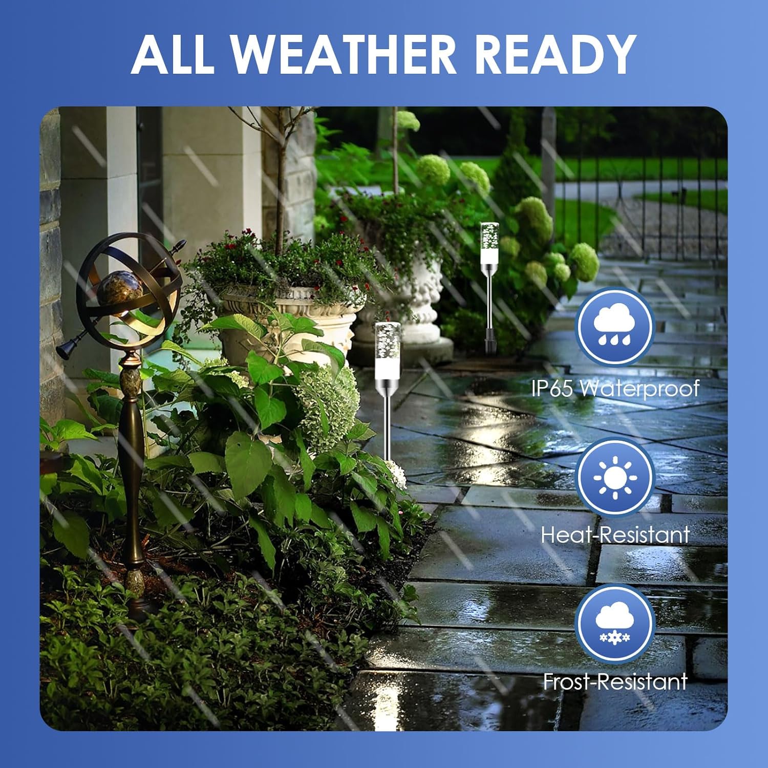 - 【Safe Low Voltage & IP65 Waterproof】Are you troubled by solar pathway lights dimming or not lighting up due to weather or power storage problems? Our 12V low voltage pathway lights avoids these problems and is safer, more energy efficient and bright all year round than traditional high voltage lighting! High-quality all-aluminum metal pole is more durable and has better heat dissipation performance. The whole light is waterproof up to IP65, no fear of rain, snow and high temperature.