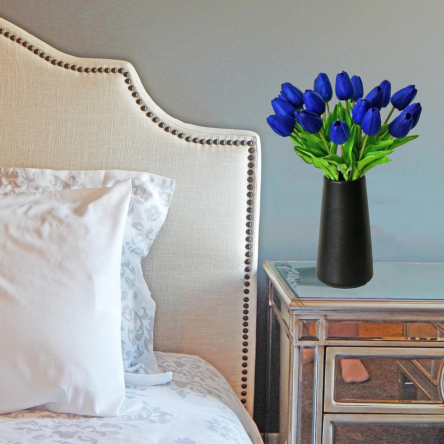 Mandy's Artificial Tulips 20 Stems Royal Blue PU Faux Flowers for Wedding Home Decor 13.5 Inch