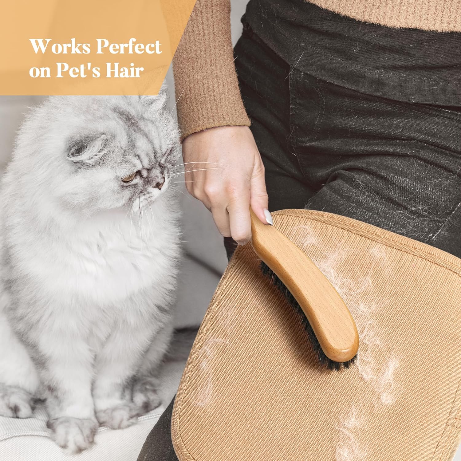 BFWood Clothes Brush - Boar Bristle Hat Brush Lint Brush for Suits, Cashmere, Wool, Velvet, Suede and Pet Hair - Large Beech Handle