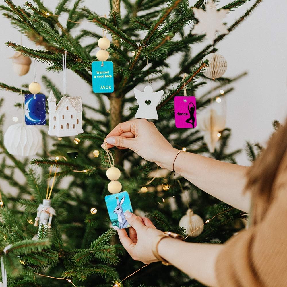 Luckforest 50 Pcs Rectangle Wooden Tags with Holes & 50 Pcs DIY Wooden Craft Beads & 28 Ft Jute Rope - Unfinished Craft Wood Wedding Birthday Party Decoration