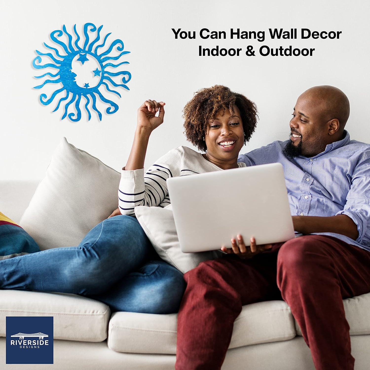 Riverside Designs Wacky Solar Moon Metal Wall Art Steel Outdoor Decor | Heavy-Duty and Waterproof | Made in USA (Teal, 24L x 24W)