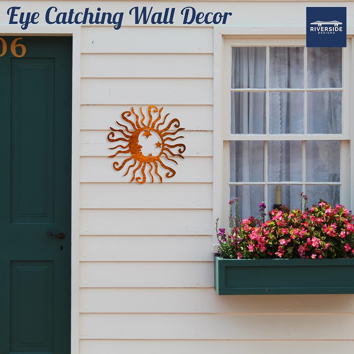 Riverside Designs Wacky Solar Moon Metal Wall Art Steel Outdoor Decor | Heavy-Duty and Waterproof | Made in USA (Copper, 36L x 36W)