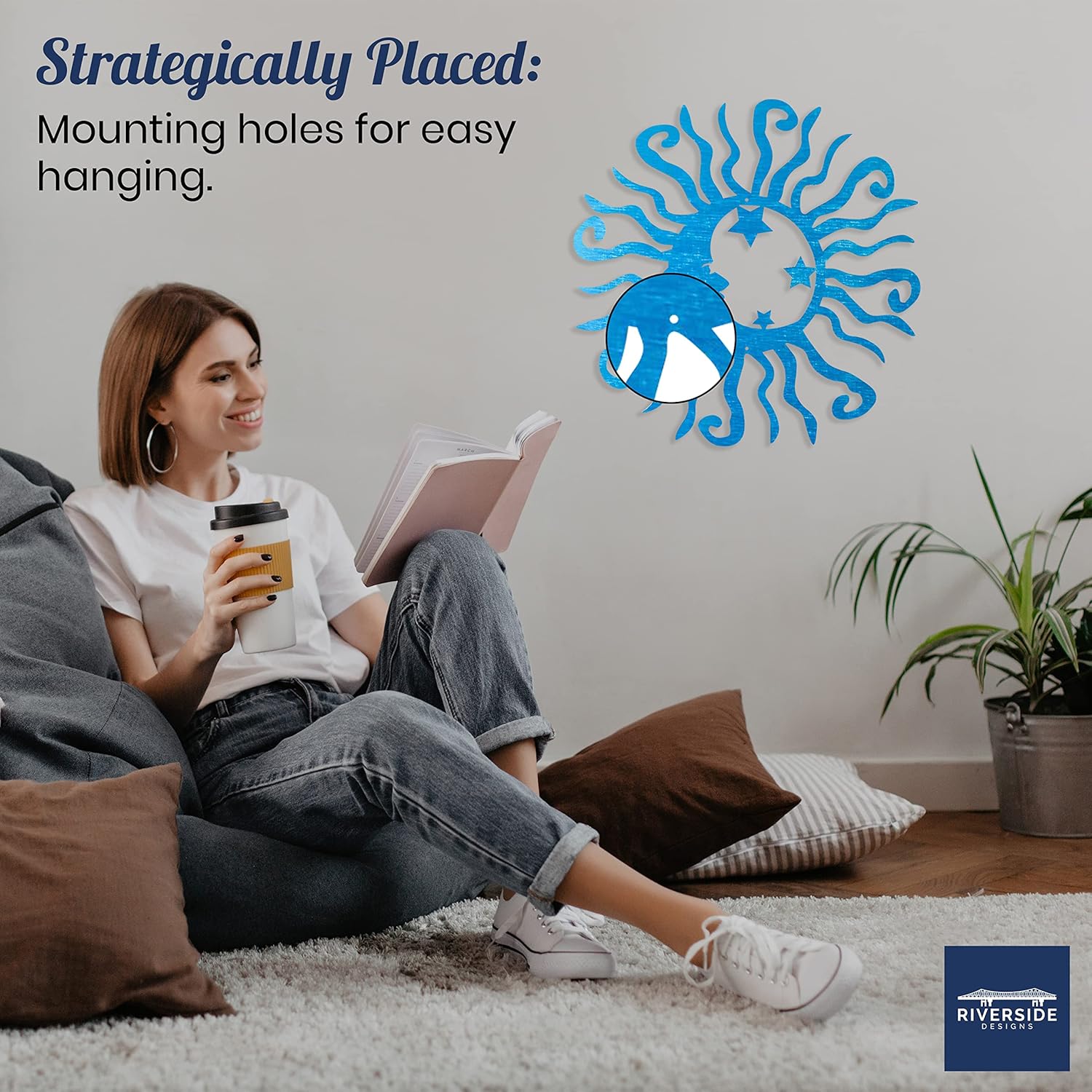 Riverside Designs Wacky Solar Moon Metal Wall Art Steel Outdoor Decor | Heavy-Duty and Waterproof | Made in USA (Teal, 12L x 12W)
