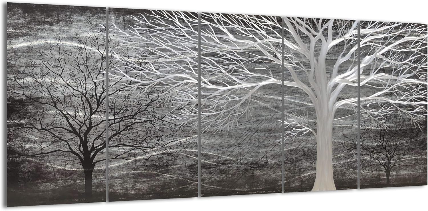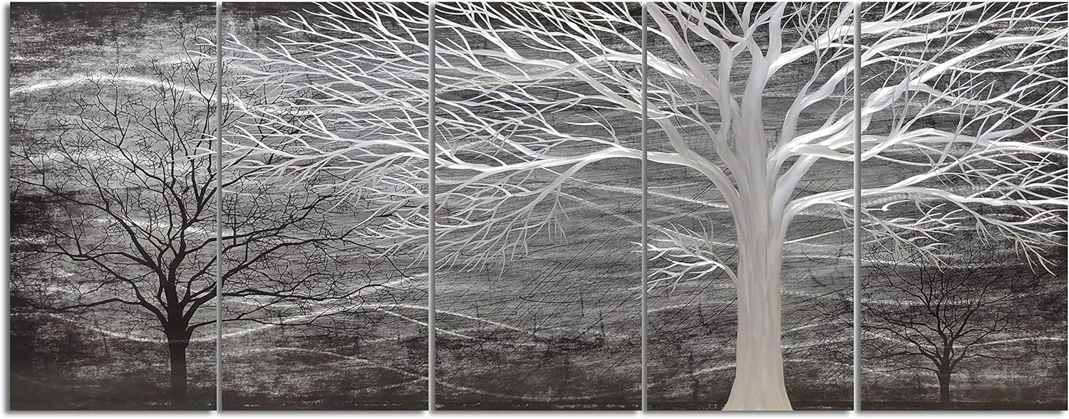 Yihui Arts Tree Metal Wall Art for Living Room Black Grey Silver Color Pictuers for Decor