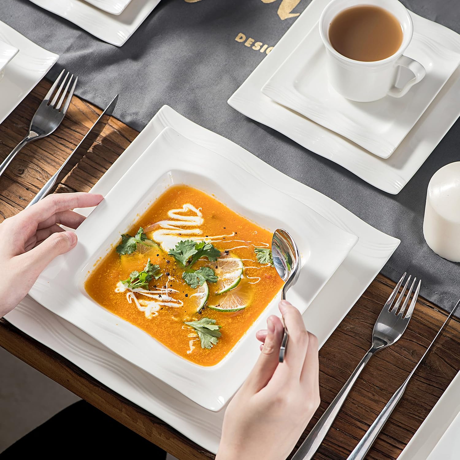 - Elegant & Multifunctional - Our plates and bowls sets are designed in more cream and ivory colors, bringing you a warmer and more relaxing time while cooking. The square dish set are great for family get-together parties, formal banquet. also as a “wow” gift for any occasion, like new year, anniversary, housewarming, wedding, Mother's day etc.
