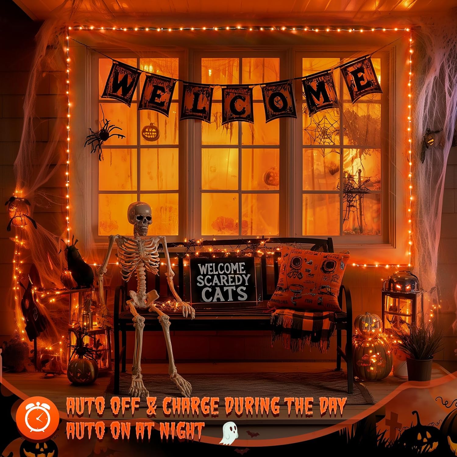 - 【IP44 Waterproof Halloween Lights Outdoor】Both the copper wire and the solar panel are IP44 Waterproof, they withstand all kinds of weather, including heavy rain and snow. Solar Halloween string lights are suitable for both indoor and outdoor usage without any worry of short circuits or weather damage.